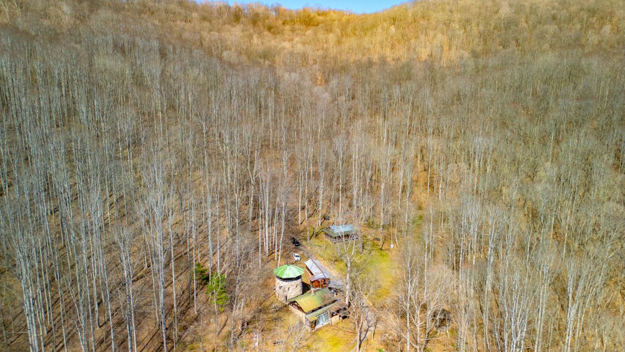 Spirit Sanctuary - 79.55+/- acre mountaintop property with eight architecturally unique cabins, spectacular views. Currently operating as Spirit Sanctuary, a private retreat center. Far from the cares of modern life, this one-of-a-kind property features cabins of local materials, ranging from a log cabin lodge to a stone tower, with electricity and bathrooms. Built between 1960 and 2004 and spanning styles from primitive to elaborate, the cabins are creative delights, with touches like stained-glass windows, handcrafted doors, decorative metal work, exposed beams and a sauna.