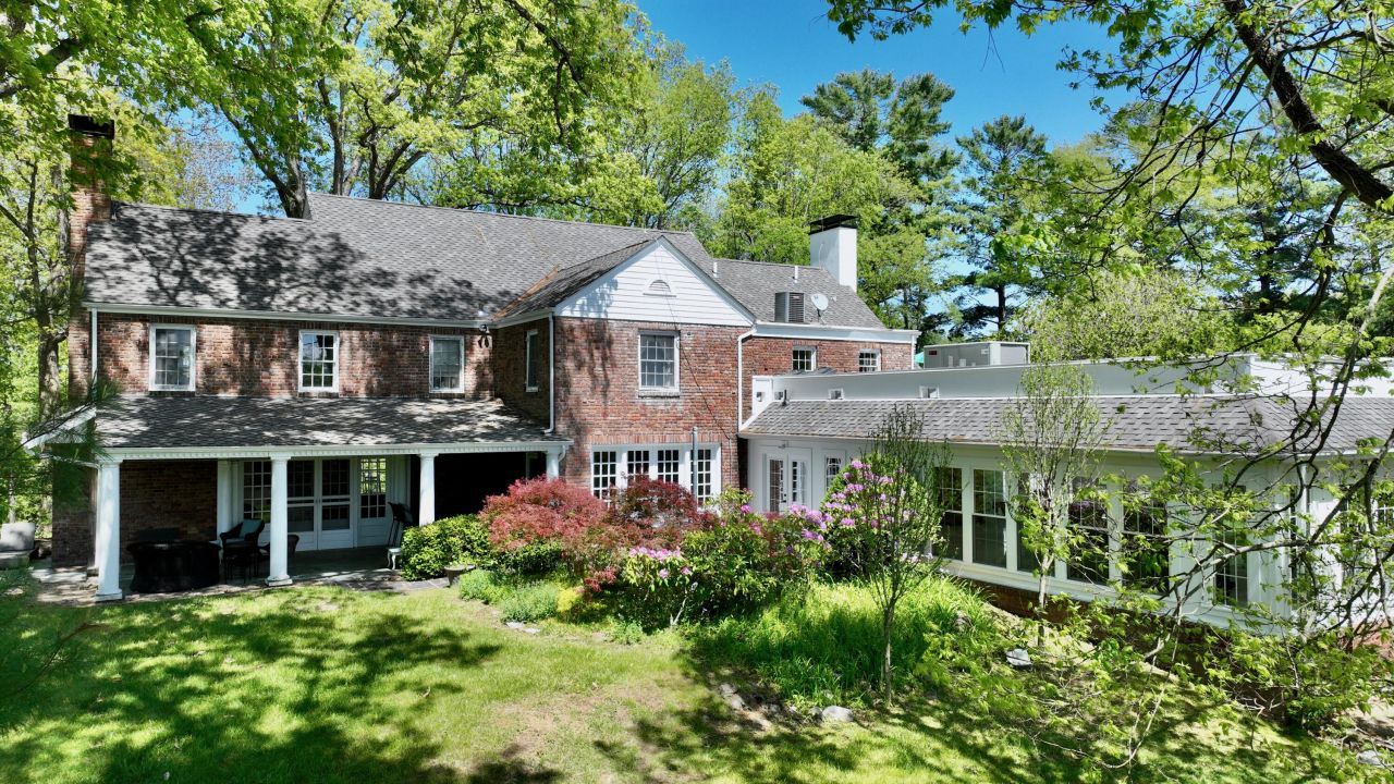 The Bell House - Perched with a stately view over the charming town of Lewisburg, this elegant Classic style home is nestled within a serene 4-acre sanctuary. The beautifully landscaped grounds include two additional structures, which upon renovation,would be ideal for guest accommodations or private office space. Multiple outdoor living areas provide the perfect setting for entertaining, while the detached 3 bay garage offers a second-story space ideal for a home gym, office, or extra storage Step inside the inviting entryway to discover a spacious living room complete with a cozy fireplace, built-in bookcases, and access to a tranquil covered patio. The adjoining dining area flows seamlessly from the living space, perfect for gatherings. The well-appointed kitchen offers generous