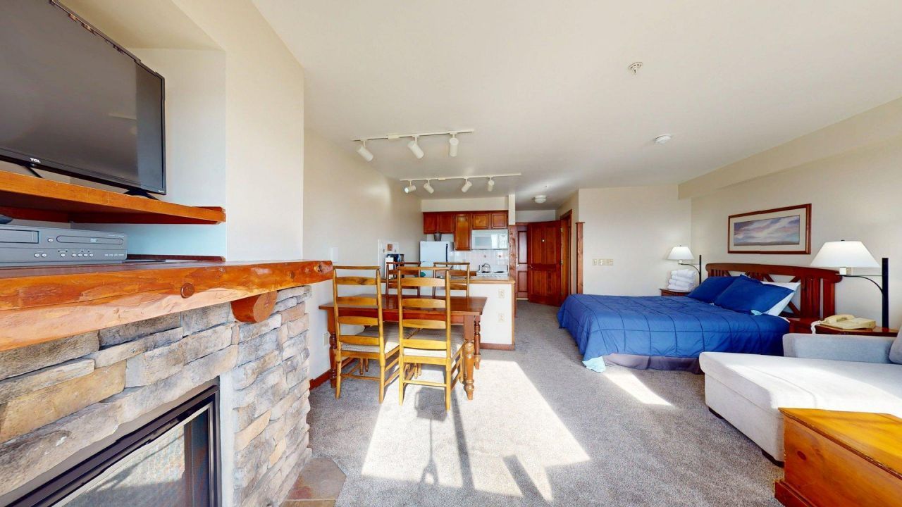 Western-facing full-size studio with a full kitchen. In time for mountain biking this summer and not to late for skiing this spring. Doint wait around on this one! Rimfire Lodge amenities include underground parking, Hearth Room, western-facing patio for enjoying the sunsets, Hot tubs, Sauna, workout machines, and ski lockers. Walk out to the Village shops and restaurants. Only a minute walk to shops, restaurants, and the slopes!