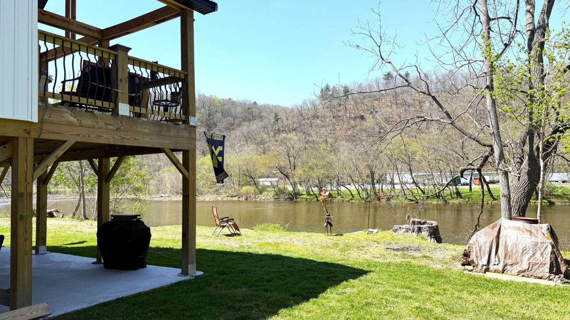 Best of both worlds-on the Greenbrier River and downtown Marlinton. Beautiful newly constructed 3 BR, 2 bath 1.5 story cottage, comes mostly furnished, features an open floor plan, river views, natural wood through out, woodburning fireplace, kitchen with granite countertops, 17X28 loft bedroom with half bath, first floor with 2 BR's and full bath, large laundry room, LVP floors, and 2 Mini splits for heat/AC. 2 sets of French doors leading to covered deck. Lower patio is perfect entertainment area with big screen TV. Board and batten siding with a black metal roof and handsome matching handrail. 14 X14 storage underneath. 1400 sq ft of pure fun, quality construction and great location for hiking and biking on Greenbrier River Trail. Perfect vacation home, Airbnb or a permanant residence.