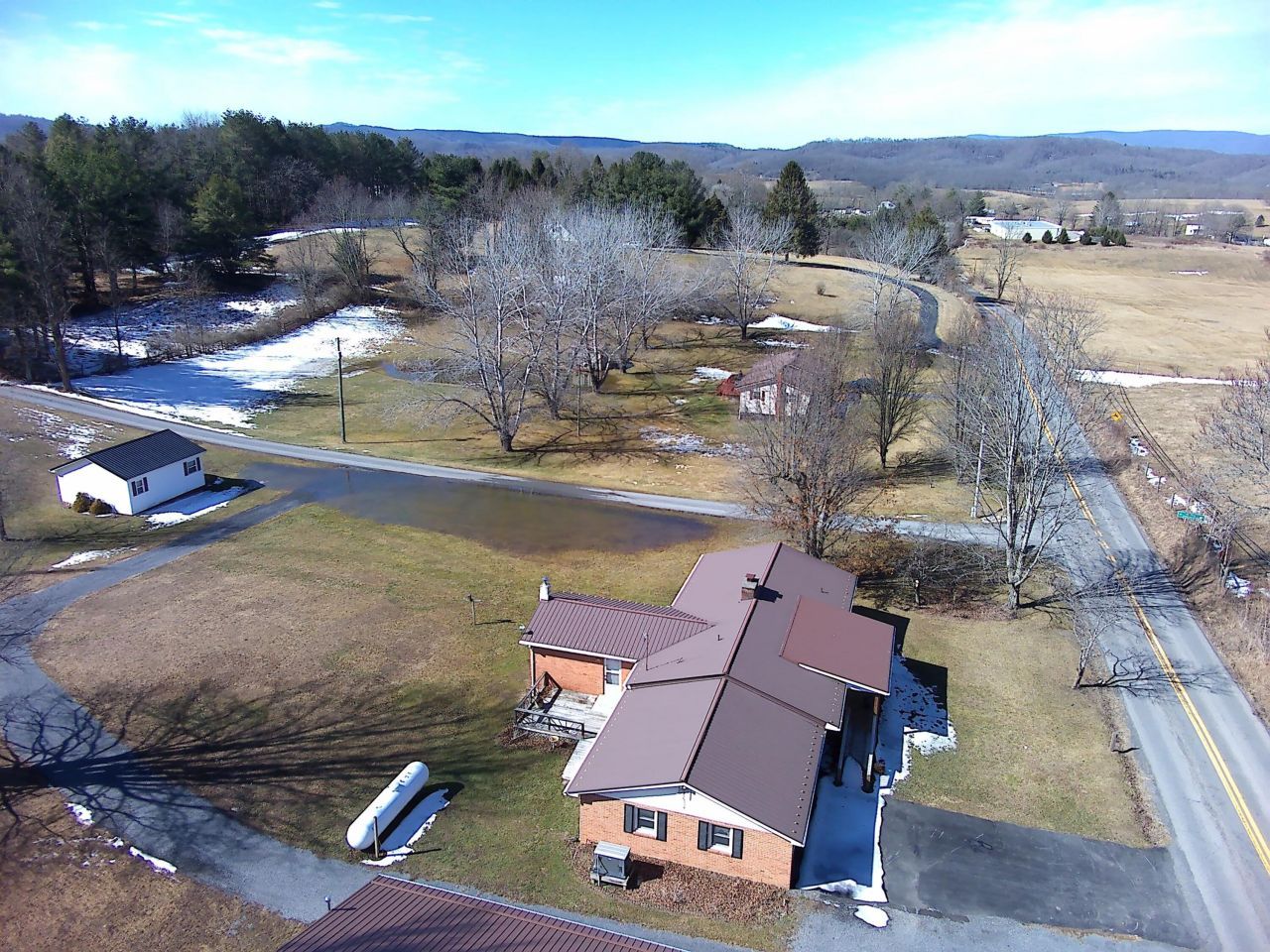 3 bedroom 3 full bath brick ranch home situate on two adjoining lots containing in the aggregate 40,000 square foot located in Frankford, WV, which is only about 15 minutes from Lewisburg, WV. For outdoor enthusiasts, this home is located only about 4 miles from The Greenbrier River Trail and Boat Launch at Anthony, WV. The living room boasts a stone and marble fireplace equipped with propane gas logs, original hardwood floors in 2 bedrooms, living room and dining room, with remaining flooring being carpet, vinyl and tile. Detached 1200 square foot garage built in 2024 has automatic garage door, separate electric meter and heated by propane furnace. Both house and garage have metal roofs. Two storage buildings convey.