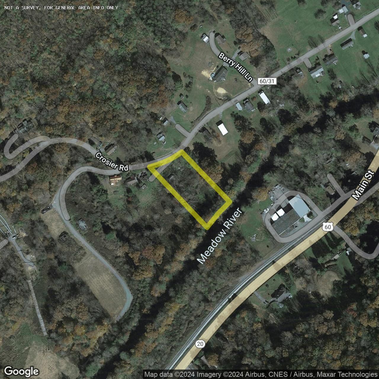 Rainelle, WV, 1.47 acres bordering 1 lane paved road and the Meadow River. Building site out of the flood plain.