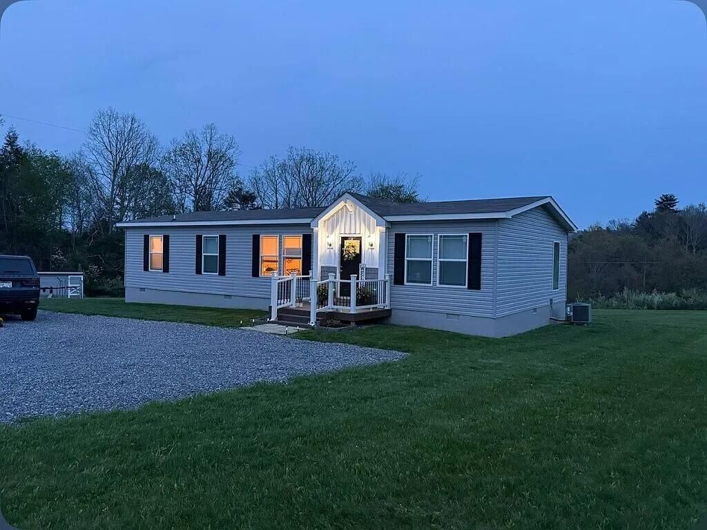 Gorgeous details inside and out. 2021 Manufactured Home (1,568 sq ft) on 10.2 acres. 3 BR, 2 bath, luxury vinyl plank floors, gourmet kitchen with huge island plus classy cabinetry and new appliances, open floor plan, fireplace (wood/propane)- everything is neat and tidy, freshly painted with new wood trim. Bathrooms have new vanities. Enjoy awesome views from the 46'X12''back deck. Deck designed with a nice hot tub area. Generator hookup, Excellent gravel driveway and good parking. Perfect mountain views with a level yard buffered with woods on the 10 acres.Central heat/air. No flood zone. No restrictions. Room for a garage. Perfect for mini-farm. Minutes from Marlinton. Move in, kick back, live your best life in Pocahontas Co, WV.