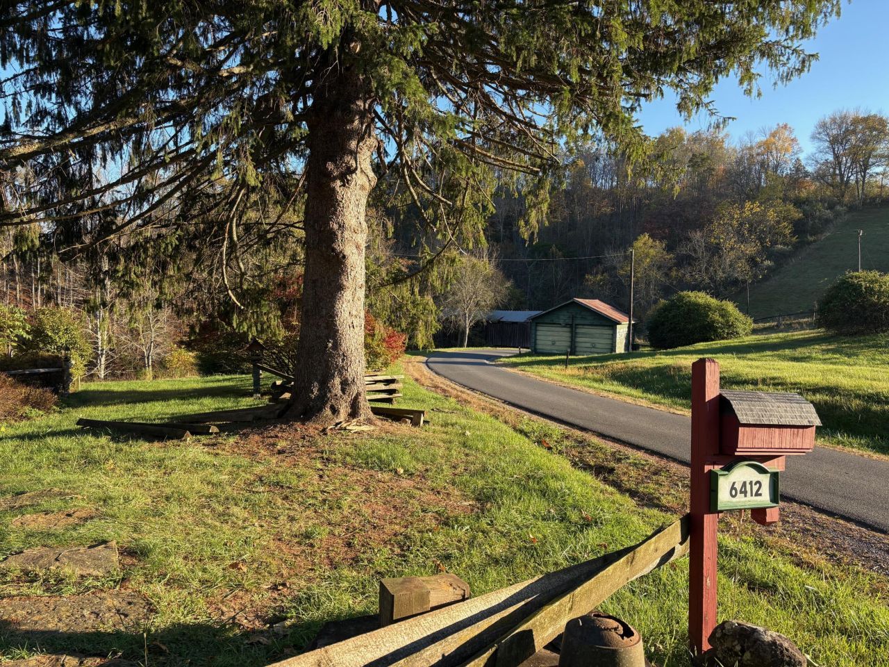 The Farmhouse at Locust Creek Covered Bridge. Unique setting on Locust Creek and bordering an Americana icon- a historic covered bridge . A lovely well maintained 3 BR, 2 bath house on 3.39 acres (new survey.) 3 beautiful stone fireplaces, antique southern yellow pine floors and original hardwood floors, fine wood finishes, and quality updates exemplify the owner's care. Floor plan provides farmhouse feel with easy flow for dining and entertaining and access to ''wrap around'' decks and porches. Upstairs: spacious bedrooms enhanced with nice windows overlooking the property. New well (2025); plex plumbing; new windows; wiring upgrades. 2 Story 32 X 24 outbuilding; workshop; metal storage. Fish in Locust Creek, plant a garden, play in the yard, and imagine days gone by. A true WV treasure